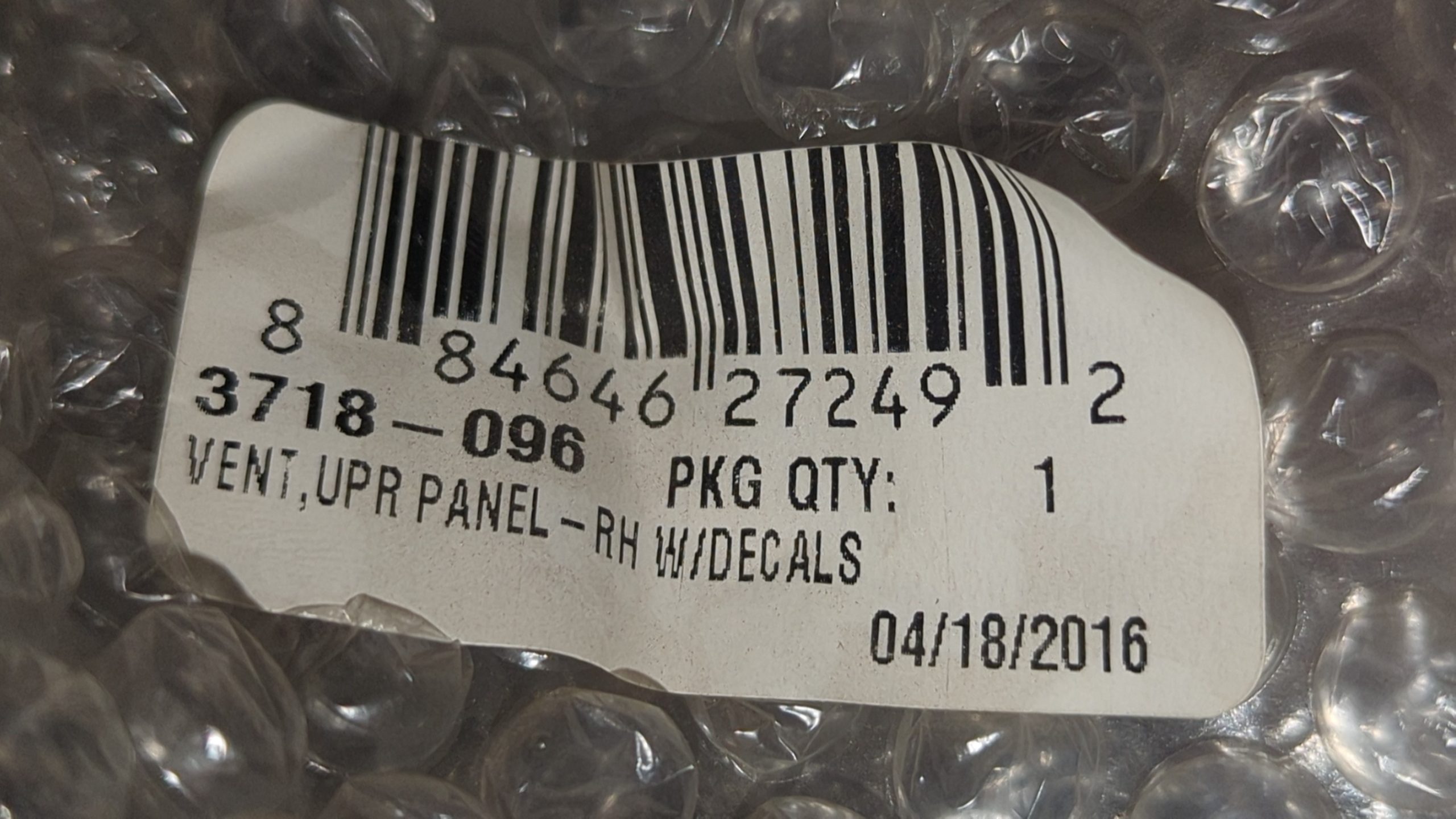 3718-096 – VENT,UPR PANEL-RH W/DECALS