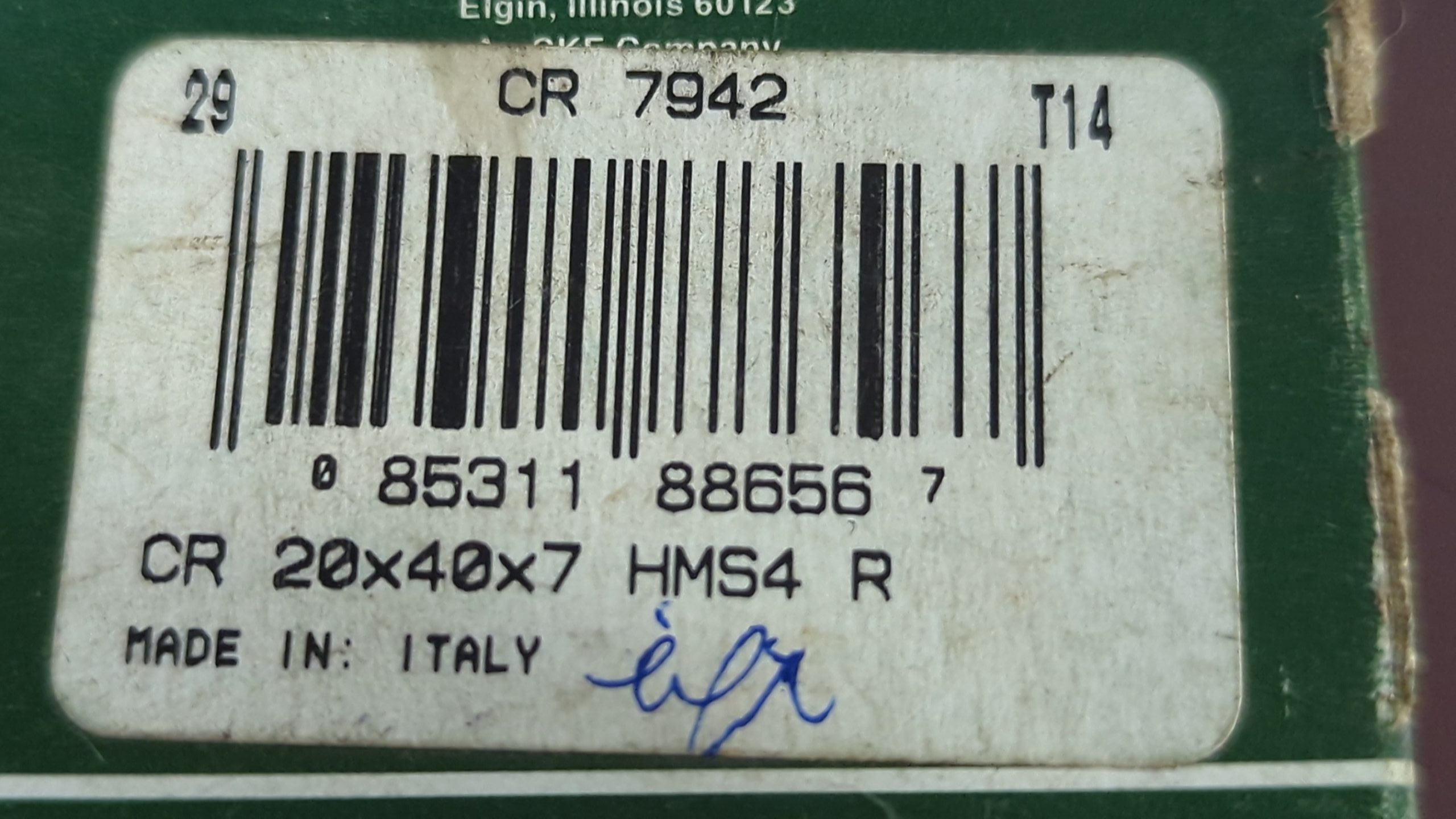 7942 (NEW IN BOX) OIL SEAL, NITRILE, SINGLE LIP, 20 MM ID, 40 MM OD, 7 MM WIDTH